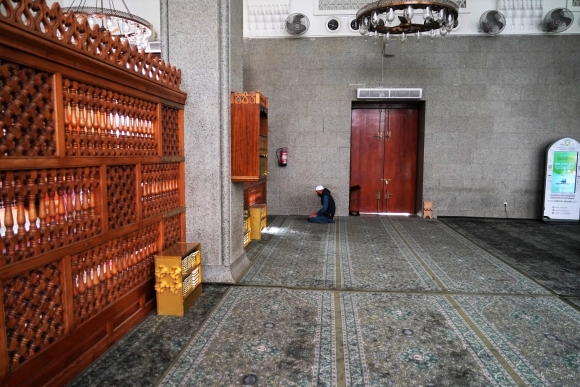 也是在礼拜,在寺内只要朝拜方向对,在哪里都可以,这样单独礼拜的人很多。